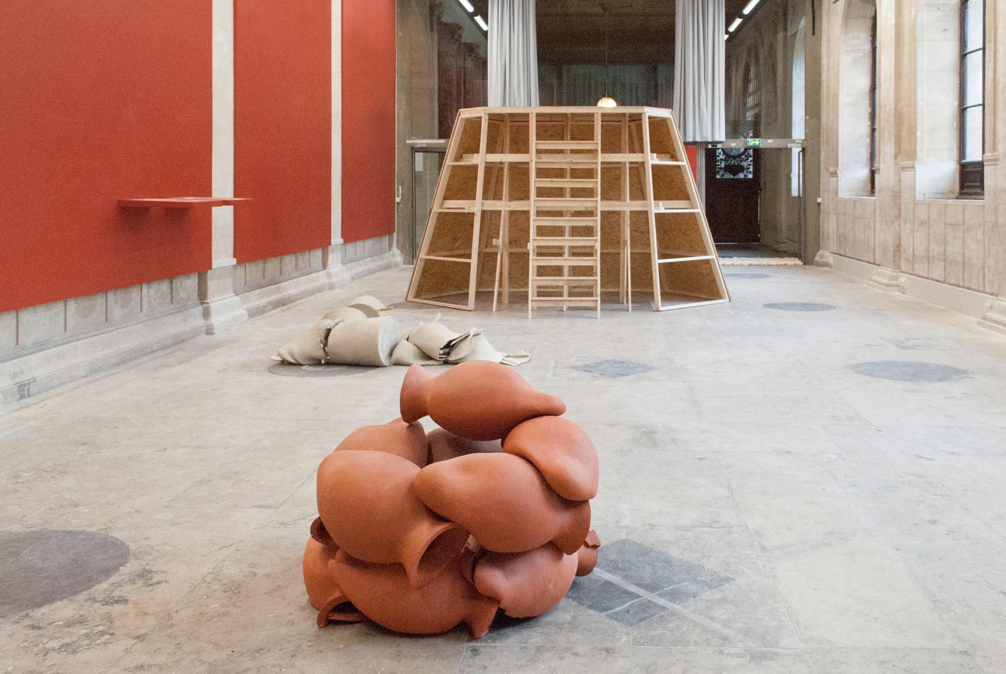 Se diriger vers les vases rouges